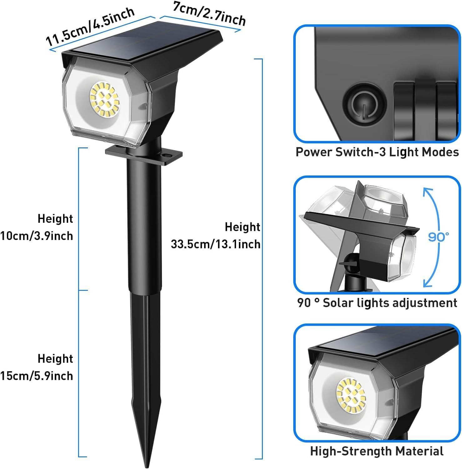 EIUIO Solar Outdoor Lights, 3 Lighting Modes Solar Spot Lights Outdoor with Auto On/Off, IP65 Waterproof Landscape Lighting for Garden Yard Pathway, 2 Pack(Cool White)