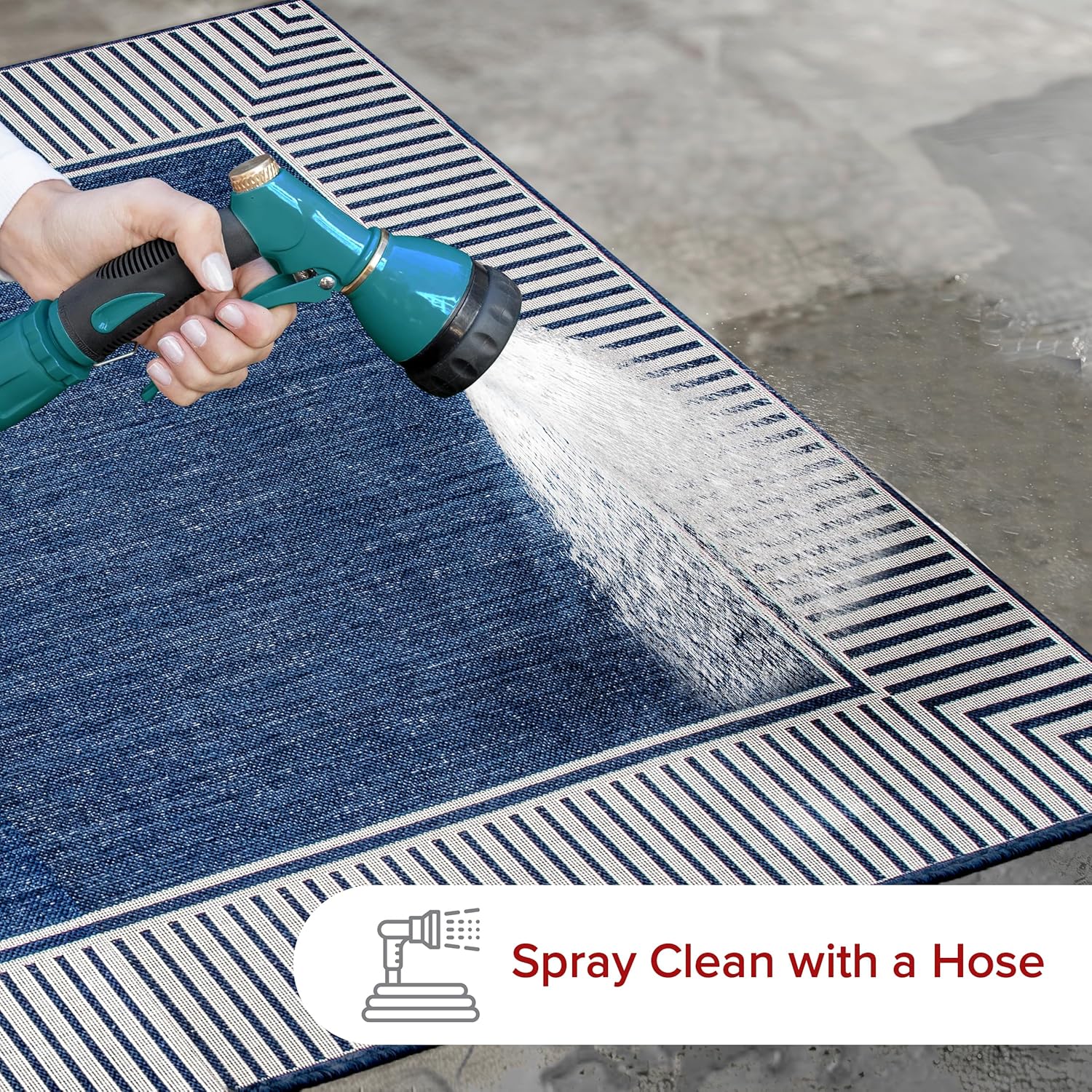 nuLOOM 8′ x 10′ Outdoor Area Rug, Casual Design With Striped Border, Stain Resistant, Highly Durable, For Patio, Balcony, Bedroom, Living Room, Dining Room, Bathroom, Navy