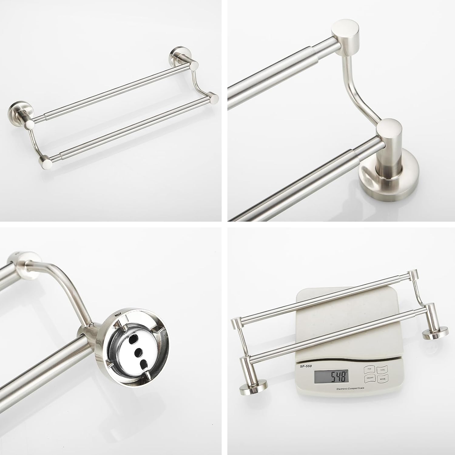 Introducing the BESy Adjustable Double Bath Towel Bar – the perfect solution for keeping your bathroom organized and stylish. Made from high-quality SUS304 stainless steel with a sleek brushed nickel finish, this towel holder exudes a modern and luxurious feel that will elevate the look of any bathroom.