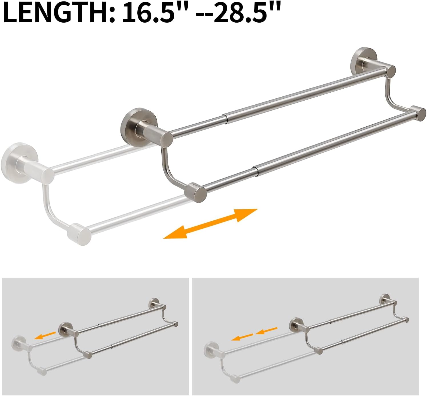BESy Adjustable 16.5-28.5 Inches Double Bath Towel Bar for Bathroom SUS304 Stainless Steel Towel Holder, Hotel Style Wall Mount with Screws Hand Towel Bar, Towel Rack Rod Hanger, Brushed Nickel Finish