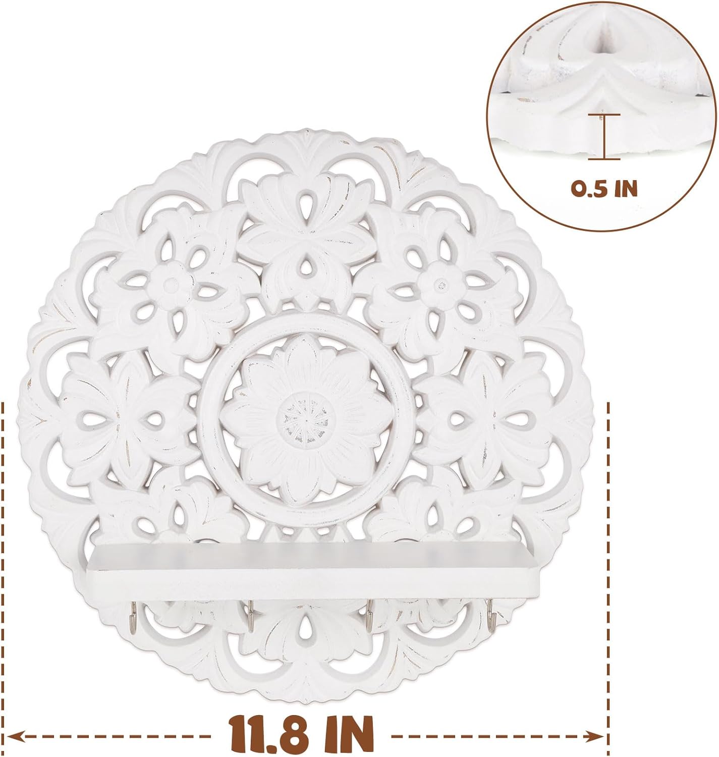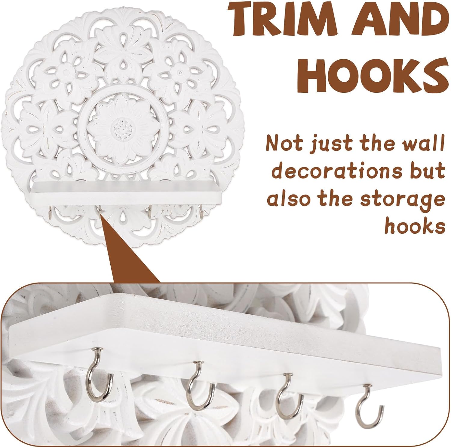 Multipurpose Floating Wall Mounted Shelf with Key Hooks – Rustic Wooden Wall Décor and Storage Solution – 12” Decorative Wall Art for Entryway, Living Room, or Bedroom – Vintage Wall Key Organizer
