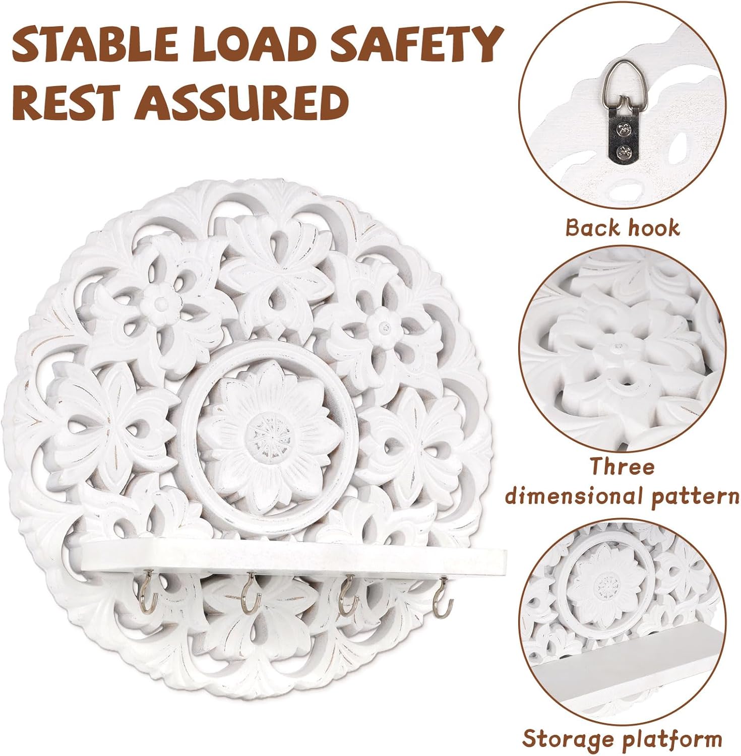 Introducing the versatile Multipurpose Floating Wall Mounted Shelf with Key Hooks, a charming addition to your home decor! This rustic wooden wall shelf serves as both a stylish wall art piece and a practical storage solution. Measuring at 12 inches, this decorative shelf is perfect for your entryway, living room, or bedroom.