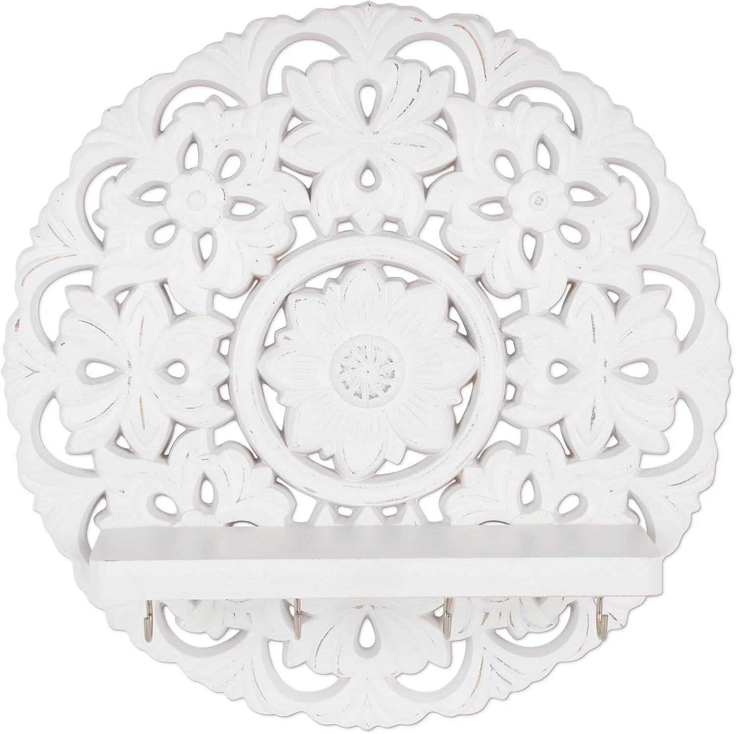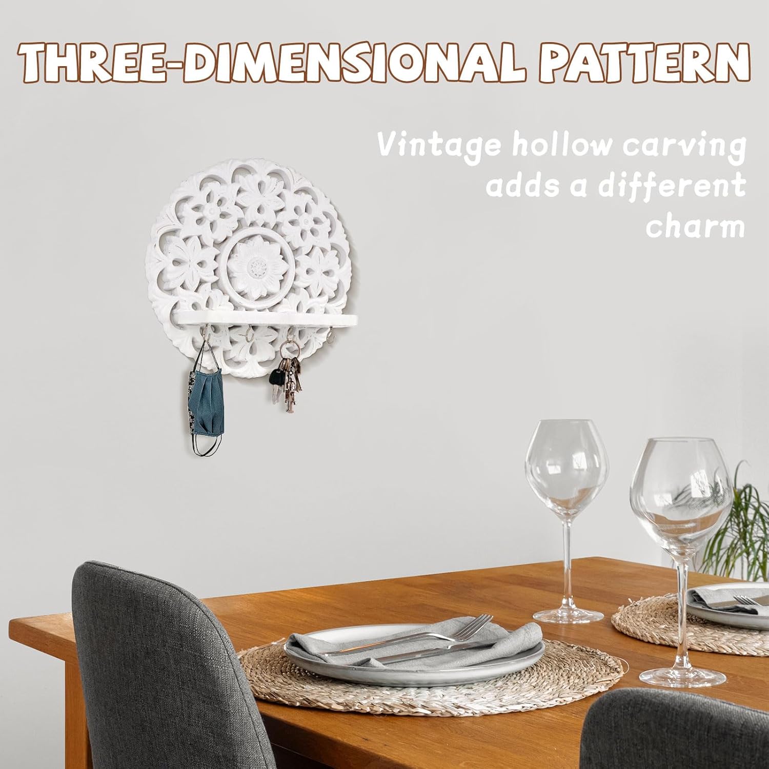 Crafted with a vintage charm, this wall-mounted shelf features a rustic wooden finish that adds warmth and character to any space. The shelf comes equipped with key hooks, providing a convenient and organized way to store your keys and keep them within easy reach.