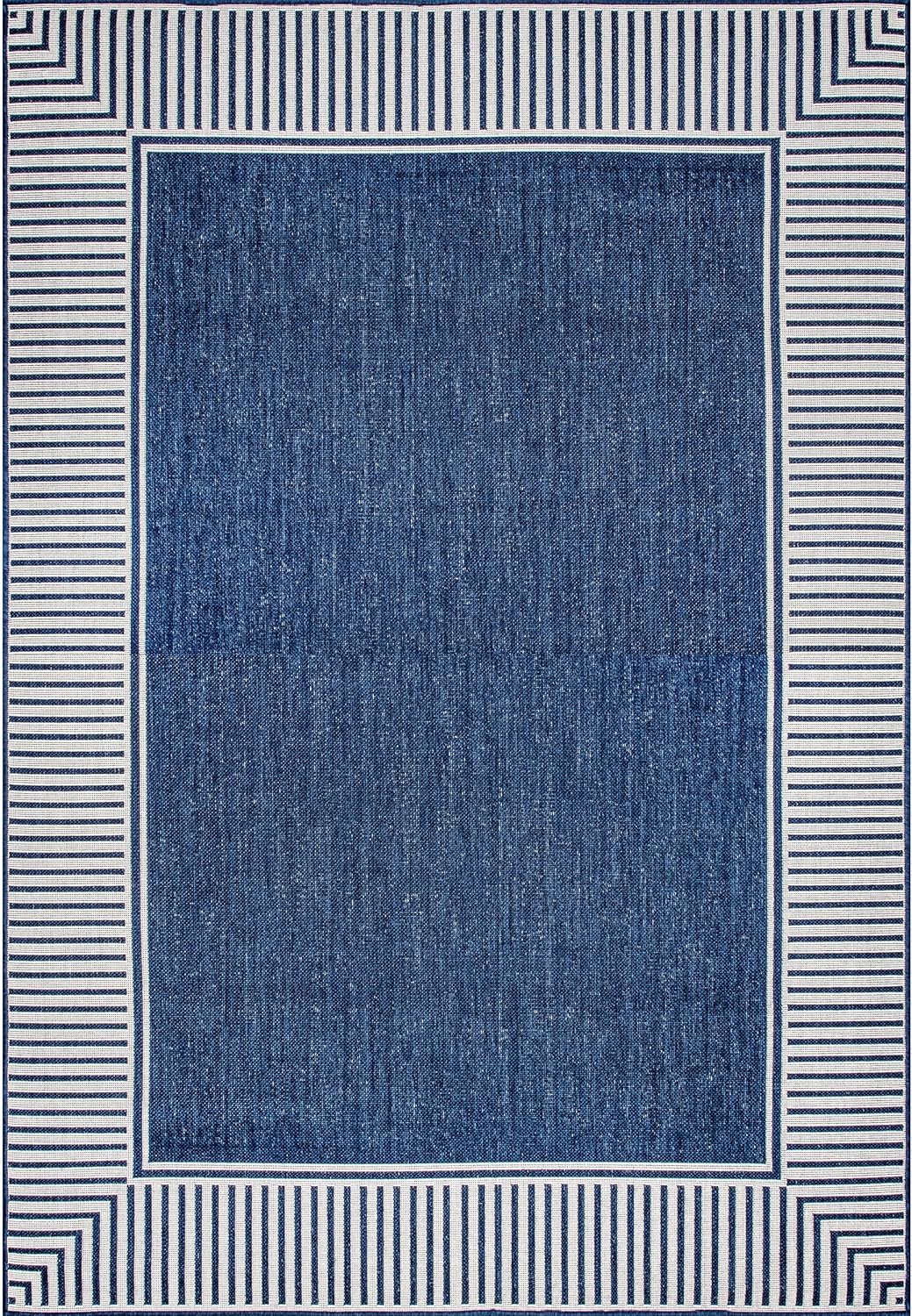 nuLOOM 8′ x 10′ Outdoor Area Rug, Casual Design With Striped Border, Stain Resistant, Highly Durable, For Patio, Balcony, Bedroom, Living Room, Dining Room, Bathroom, Navy